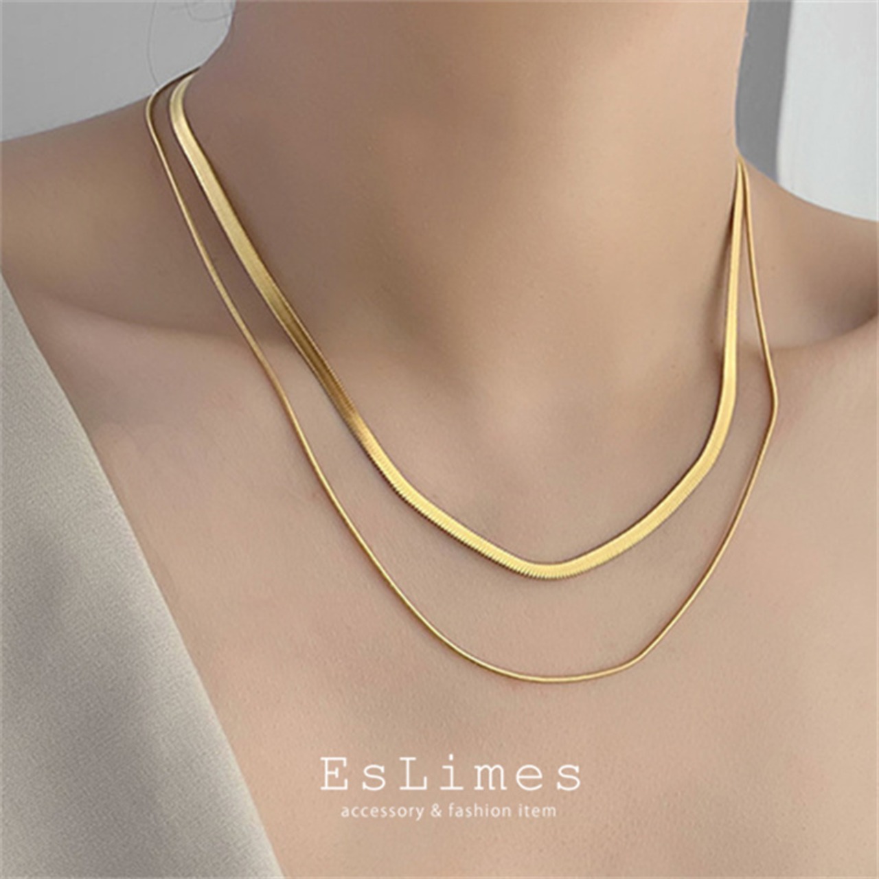 ネックレス レディース 2連 チョーカー ステンレス 18Kコーティング シンプル おしゃれ カジュアル 重ね付け 人気 通販 ギフト 自分用 プレゼント